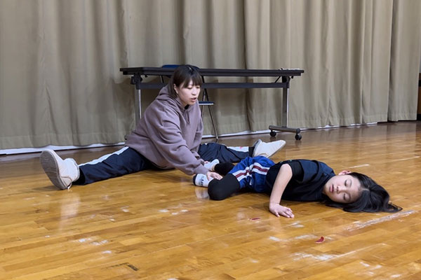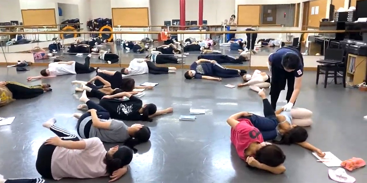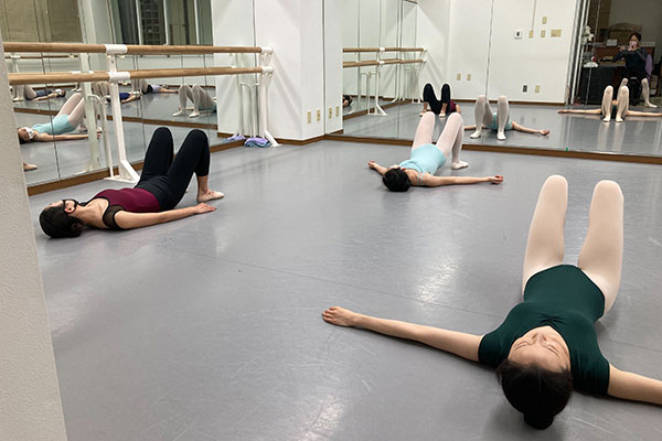 また、座骨で歩いたり、肋骨を動かしたりする動きは、バレエのレッスン以外のエクササイズを提示することができて、新鮮な感想ももらえました。生徒からの素朴な質問や意見なども、フィードバックすることができて、また、次の動きやダンスへの転換時には、いままで曖昧だった方向性や指導言語を振り返ることができました。以上ですが、全体として、やはり床でのレッスンの声掛けの難しさを本当に痛感します。若佐先生がよどみなく声をかけておられ、また、時にはじっくりと待っていることなど、自分で体験して、本当に難しかったです。同期の皆さんを動かすには、どうしたらいいのか、どう伝えたらこちらの意図する方向に動いてくれるのか、本当に大変です。また、何も指示をしない時間、たぶん1分程度かと思いますが、その時間を待つ間に、何か話していないととても不安でした。こちらが待つことに慣れないと、いつまでも、先走った指導になってしまう、ということが、よくわかりました。これは、何度も、何回もの経験でクリアーになるものなのか、不安ではありますが、少しずつでも進めていけたらと思います。